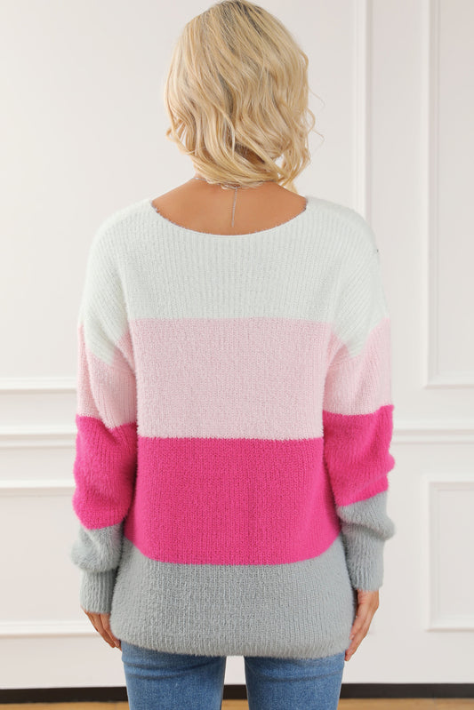 Color Block Collared Neck Long Sleeve Sweatshirt