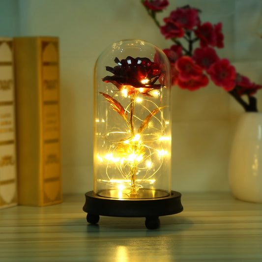 Foil Rose LED String Light Rose Fairy Lamp w/ Glass Dome For Valentines' Day