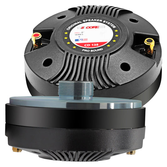 5 CORE Horn Speaker Tweeter Compression Driver 2 Inch Titanium Voice Coil 400W Max 8 Ohm 200 Watts RMS 1.5k - 20kHz Frequency 35Oz 135mm Magnet Screw-on Throat 18TPI - CD 135