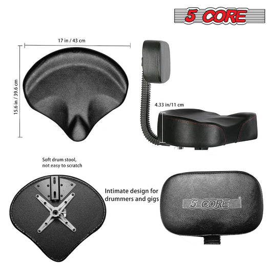 5 CORE Drum Throne with Backrest Thick Padded Adjustable Guitar Stool Motorcycle Style Saddle Music Chair Seat for Adult Drummers - DS CH BLK REST