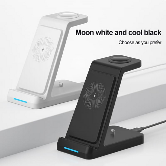 3 in 1 Wireless Charging Station, 15W Fast Charge, Just Put and Charge, Multifunction Using (Black)