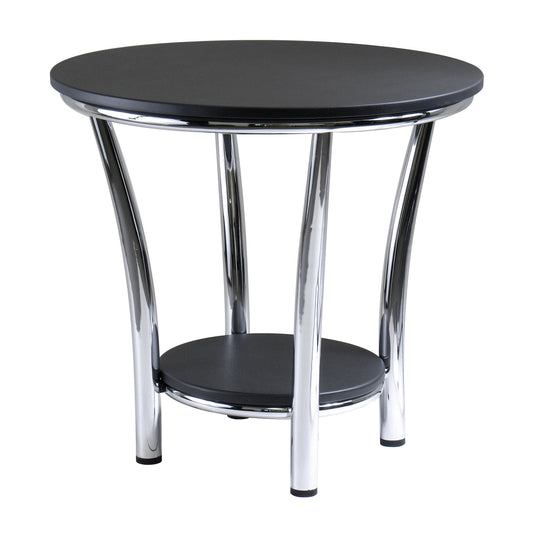 Maya Round End Table; Black Top; Metal Legs