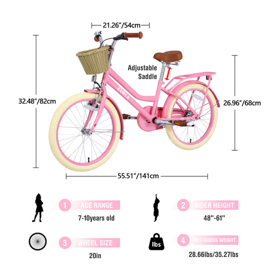 Multiple Colors,Girls Bike with Basket for 7-10 Years Old Kids,20 inch wheel ,No Training Wheels Included