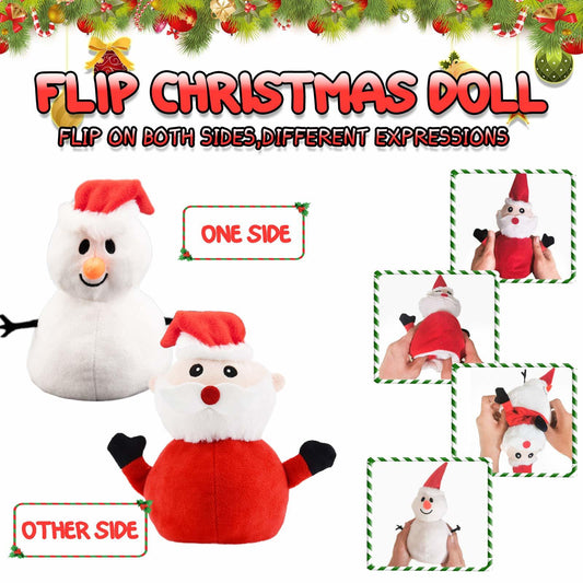Santa Plush Snowman Plush Toy Reversible Christmas Santa Claus Double Side Stuffed Plushie Soft Doll New Year Birthday Gift for Kids