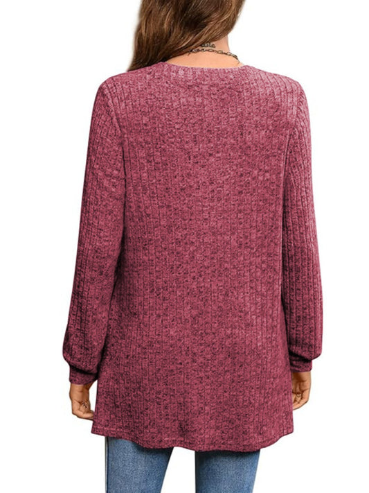 Slit Notched Pocketed Long Sleeve T-Shirt