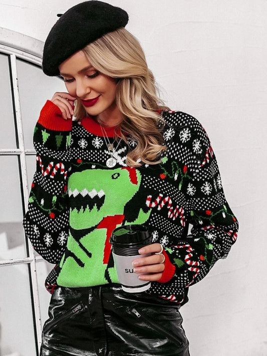 Christmas Pattern Round Neck Long Sleeve Sweater